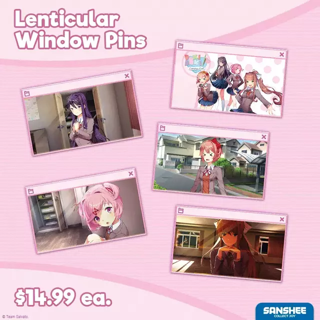Sanshee will launch a set of lenticular pins featuring iconic moments in the game. Plus, check out the Monika Collector’s Plush on display which will be available for pre-order via their website at a later date! More details TBA!